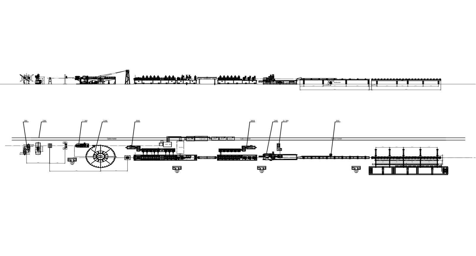 Hydraulic Uncoiler→Shear and end welding machine( strip joiner) →Accumulator→forming machine→HF welding →Eddy current testing →Water Cooling→Sizing machine→ Flying Saw →Run out table→ Packing → Warehouse Storage.